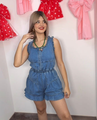 Saludos Soy De La Isla... Denim Ruffle Romper