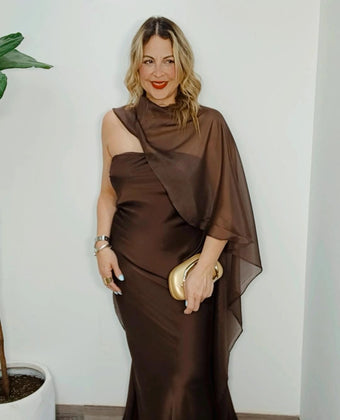 Diana Chocolate Satin Dress (Two Pieces)